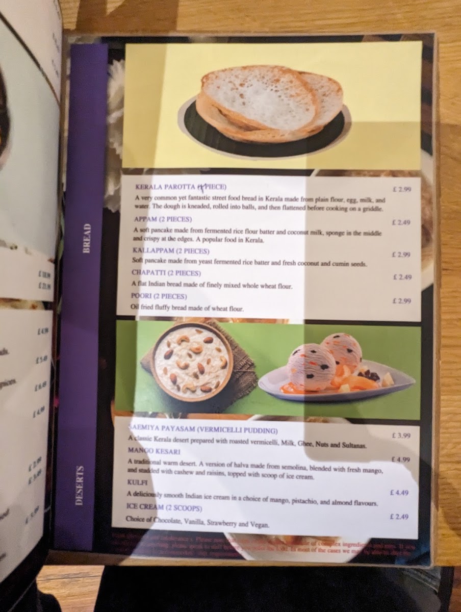 (Vegetarian) A very common yet fantastic street food bread in Kerala made from plain flour, egg, milk, and water. The dough is kneaded, rolled into balls, and then flattened before cooking on a griddle