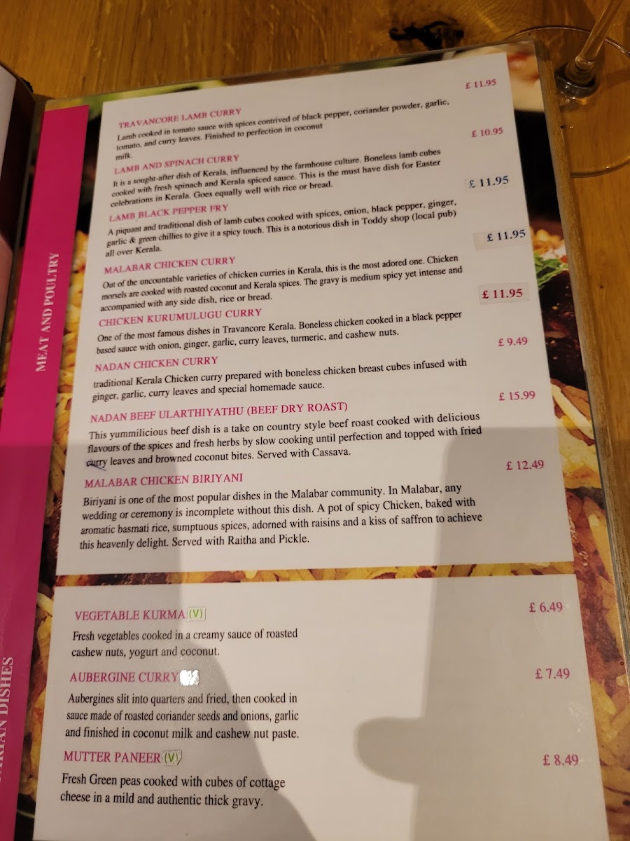 One of the most famous dishes in Travancore Kerala. Boneless chicken cooked in a black pepper-based sauce with lemon, ginger, garlic, curry leaves, turmeric, and cashew nuts